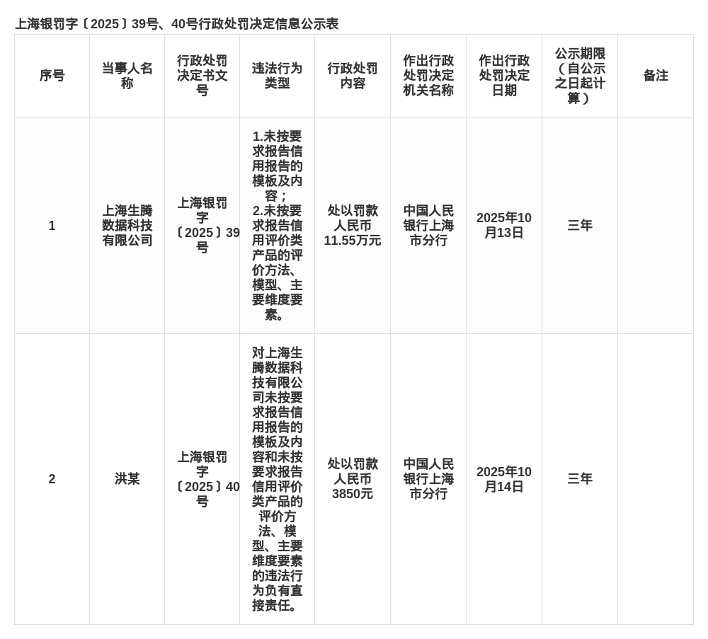 蓝鲸新闻10月17日讯,近日,中国东谈主民银行上海市分行发布了罚单,剑指上海生腾数据科技有限公司异常探究包袱东谈主。